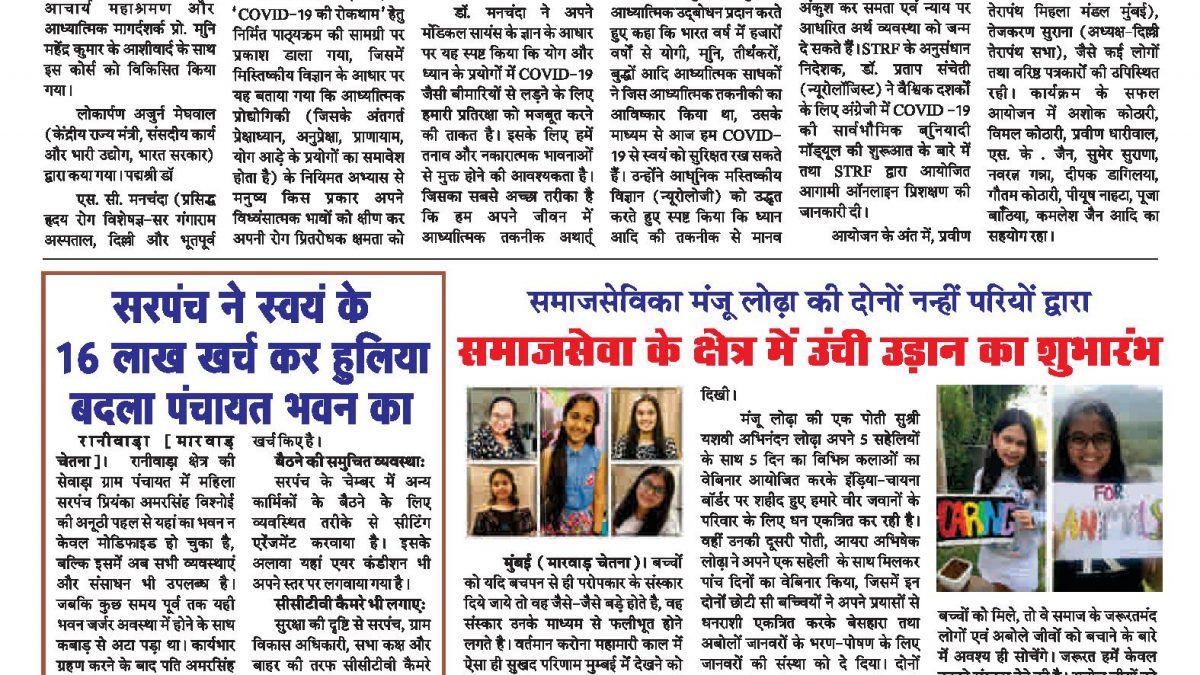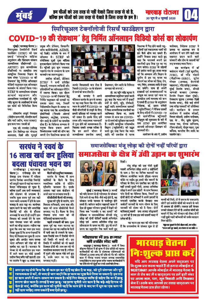 News Coverage of Launch of Online Video Course for Prevention of Covid-19 on Pg 4.