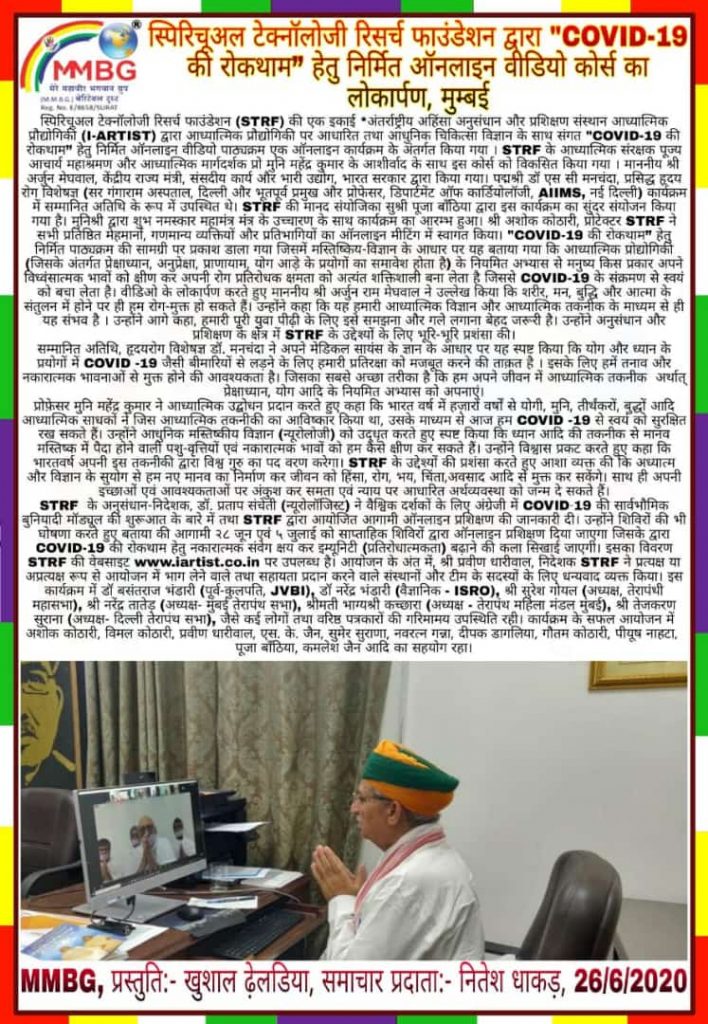 News Coverage of Launch of Online Video Course for Prevention of Covid-19.
