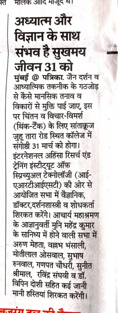 Date: March 29, 2019NewsRajasthan patrika page 2 published on 29th March,2019
