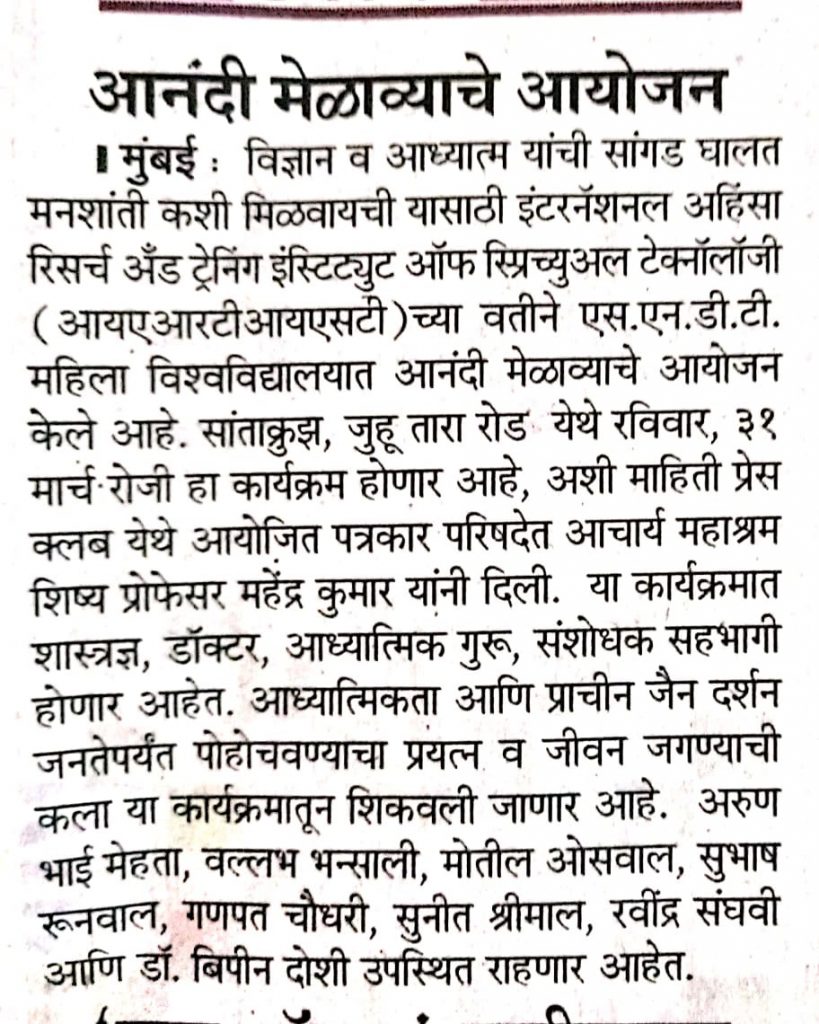 Date: March 30, 2019News30th March, 2019 - Mumbai Samachar page 3 coverage